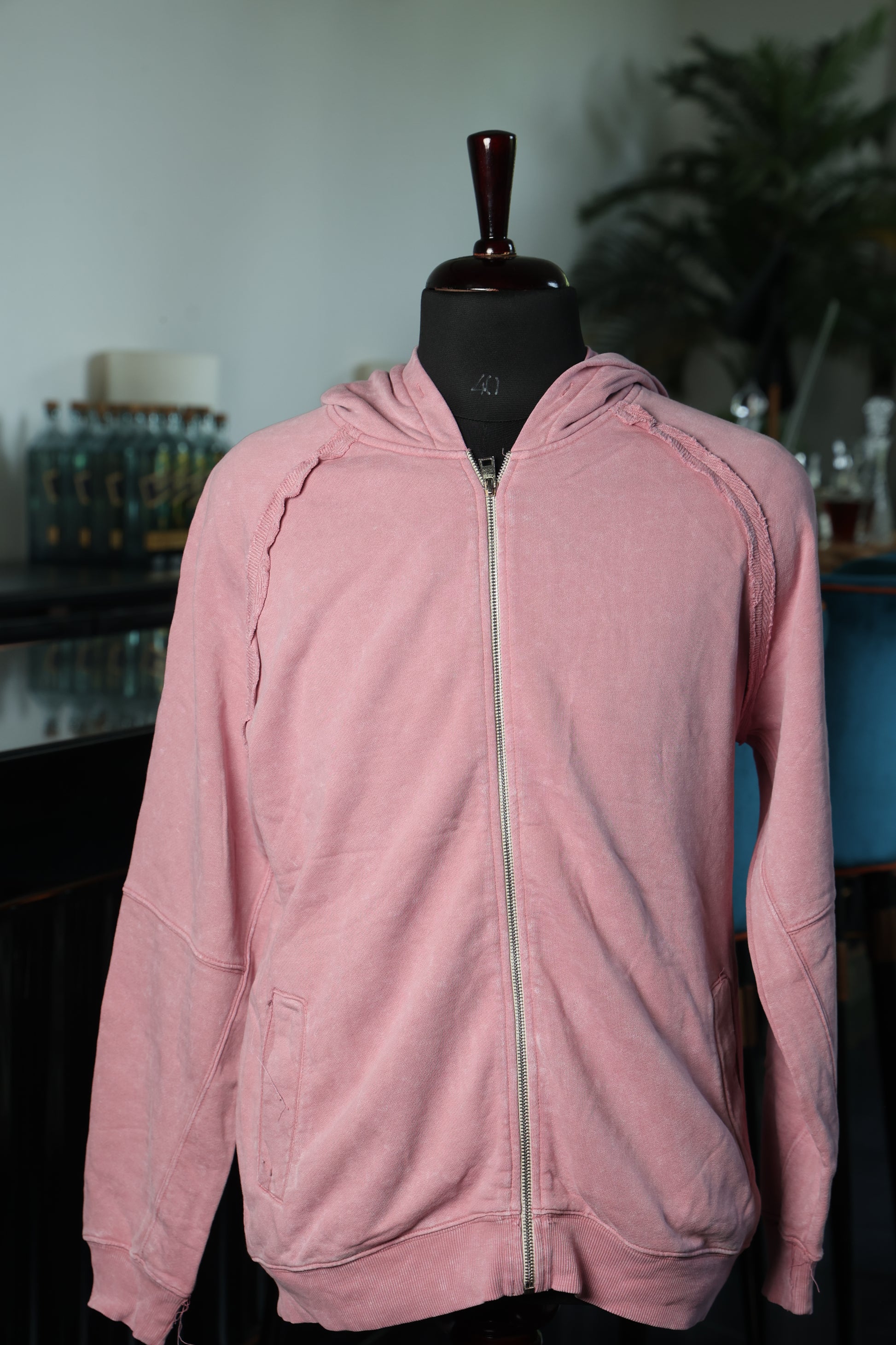 This pink zip-up hoodie features soft grey textured accents, combining a cozy fit with a stylish design, perfect for adding a subtle flair to your casual wardrobe.
