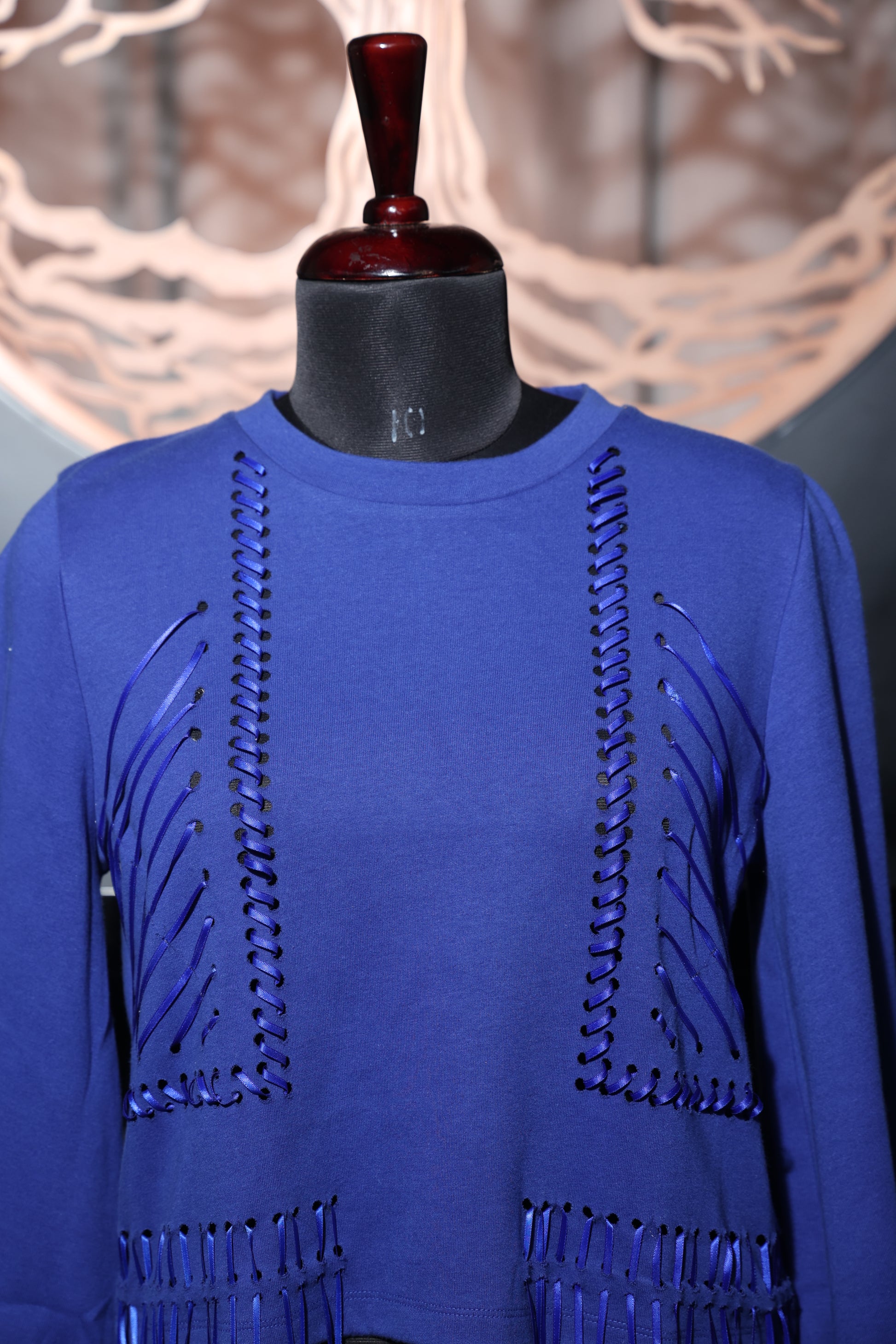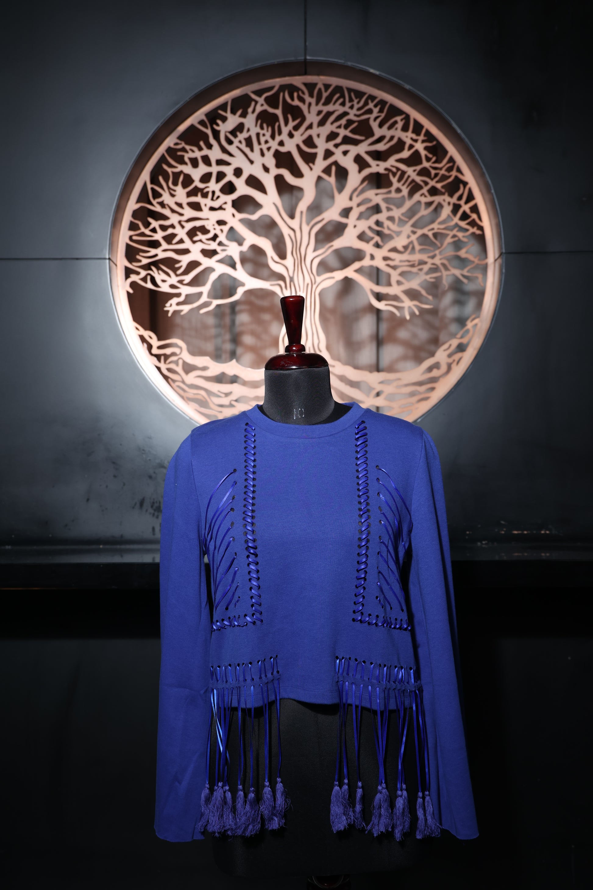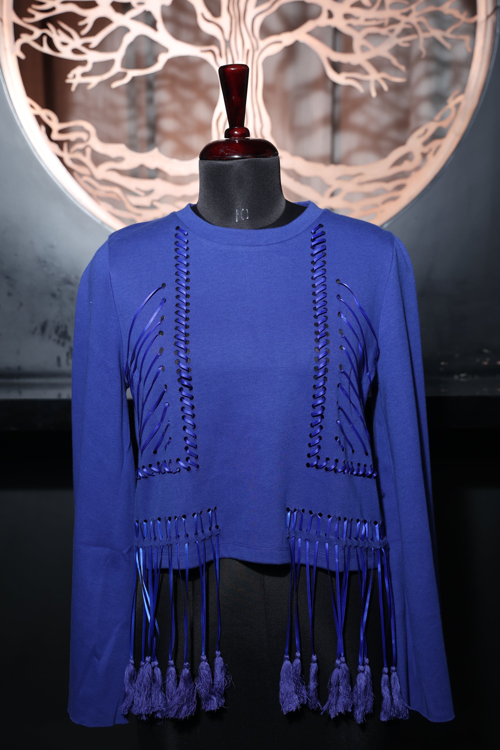 Stand out with the striking Cobalt Cascade Tassel Top. Pair it with sleek trousers or denim for a stylish look that transitions effortlessly from day to night, exuding confidence and effortless elegance.