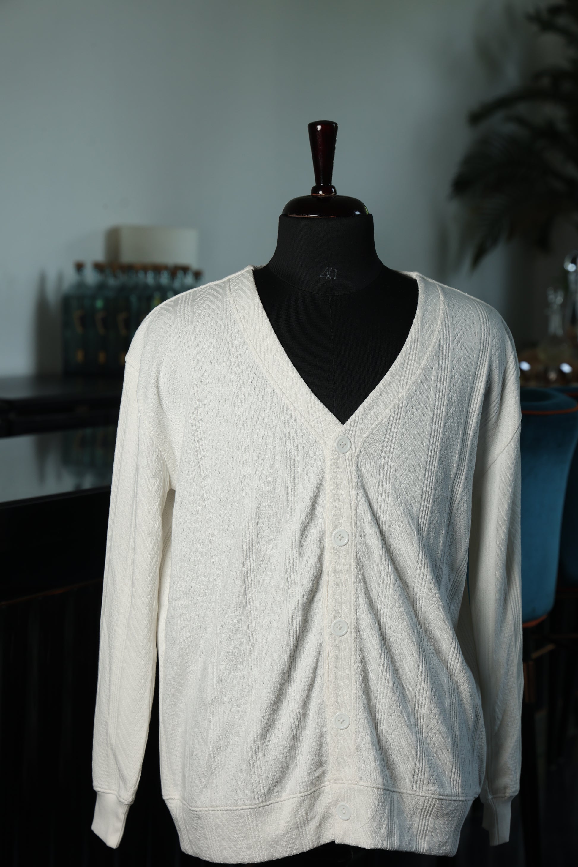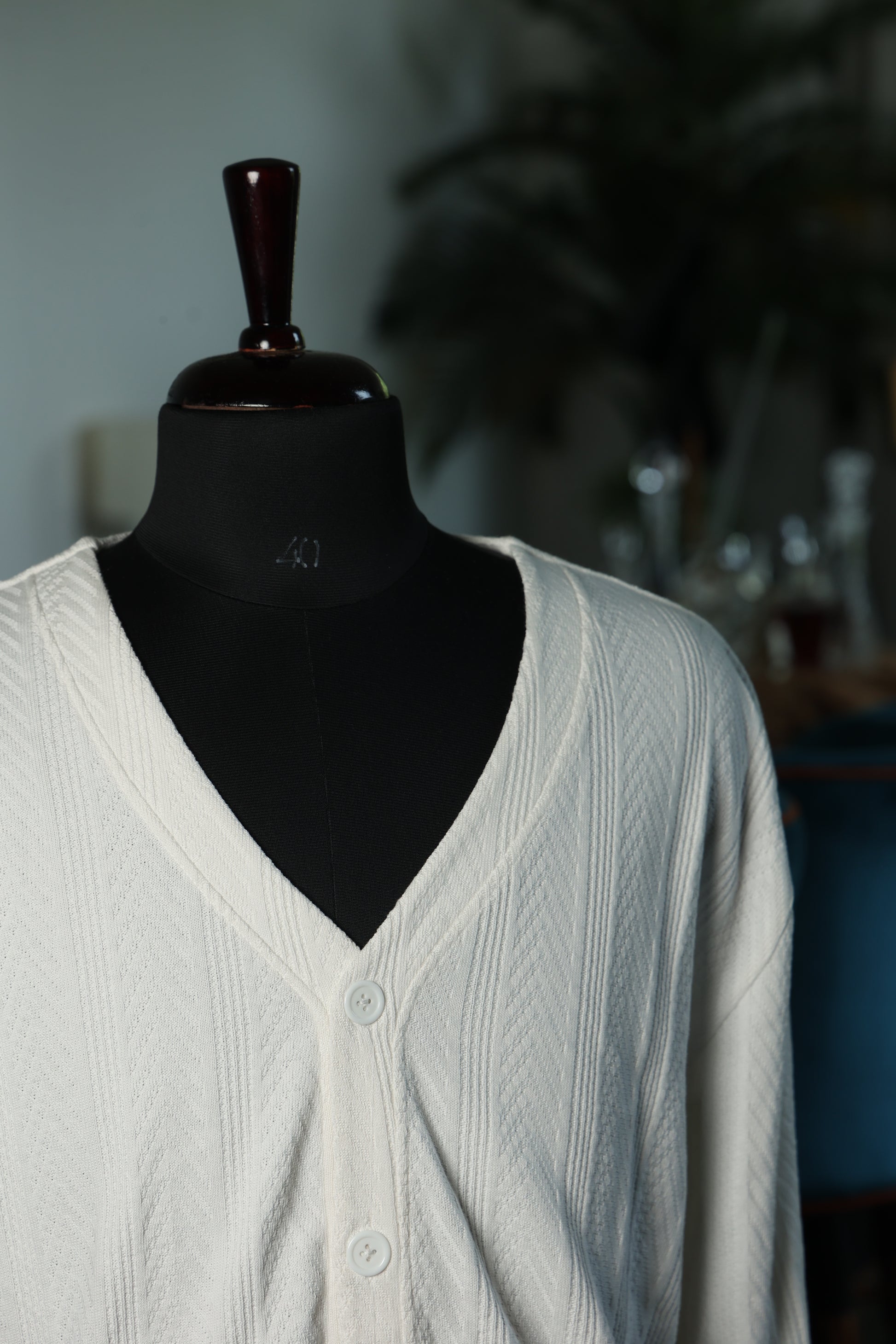 Elevate your wardrobe with this essential white cardigan, designed for a relaxed fit and easy layering, perfect for any season.