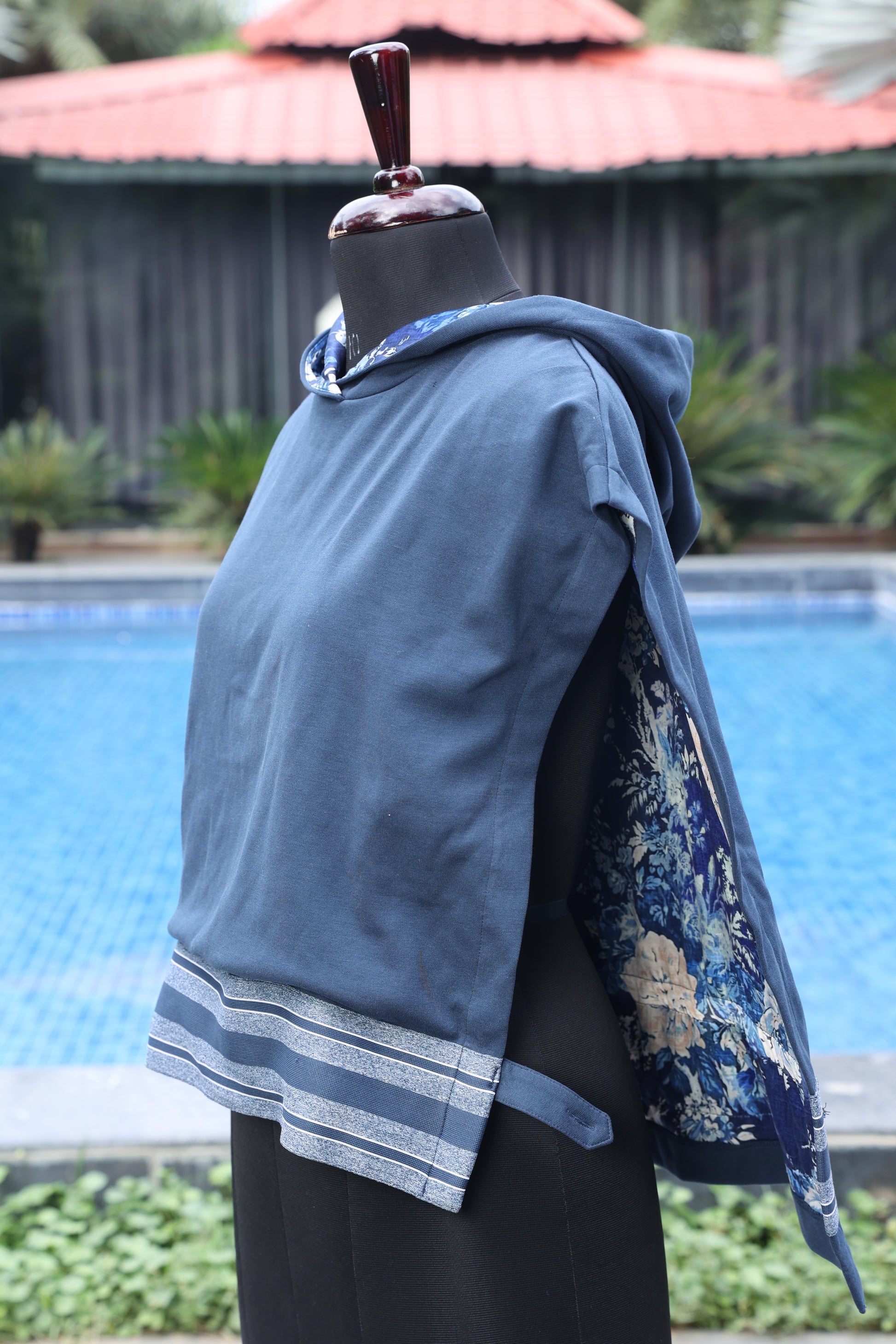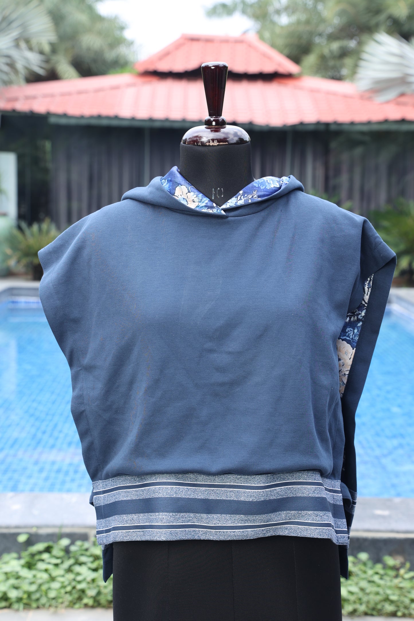 This sleeveless hoodie combines a modern silhouette with a playful twist, featuring side slits for a relaxed fit and a vibrant floral print underlay at the back, perfect for adding a touch of flair to your casual outfits.