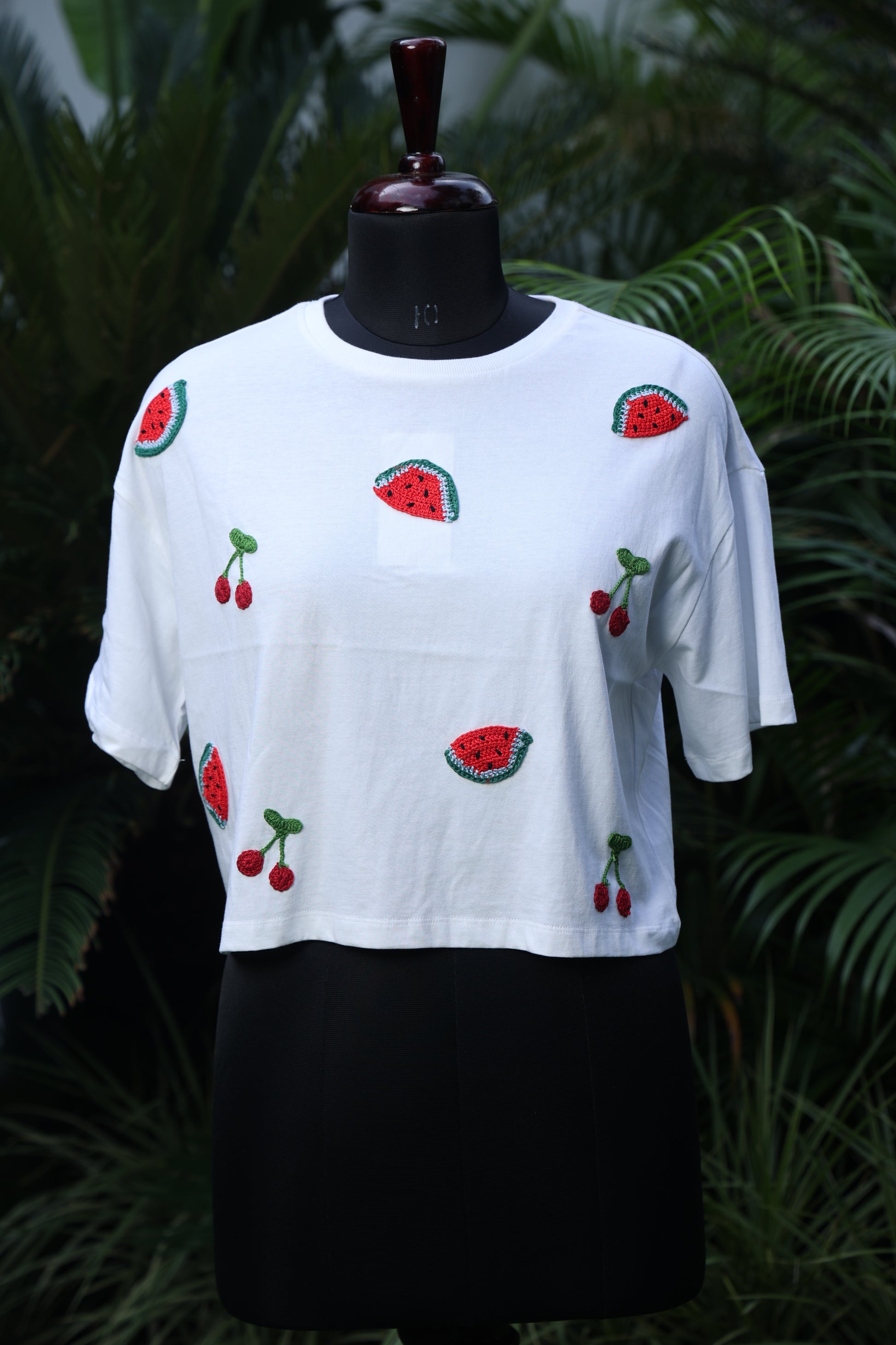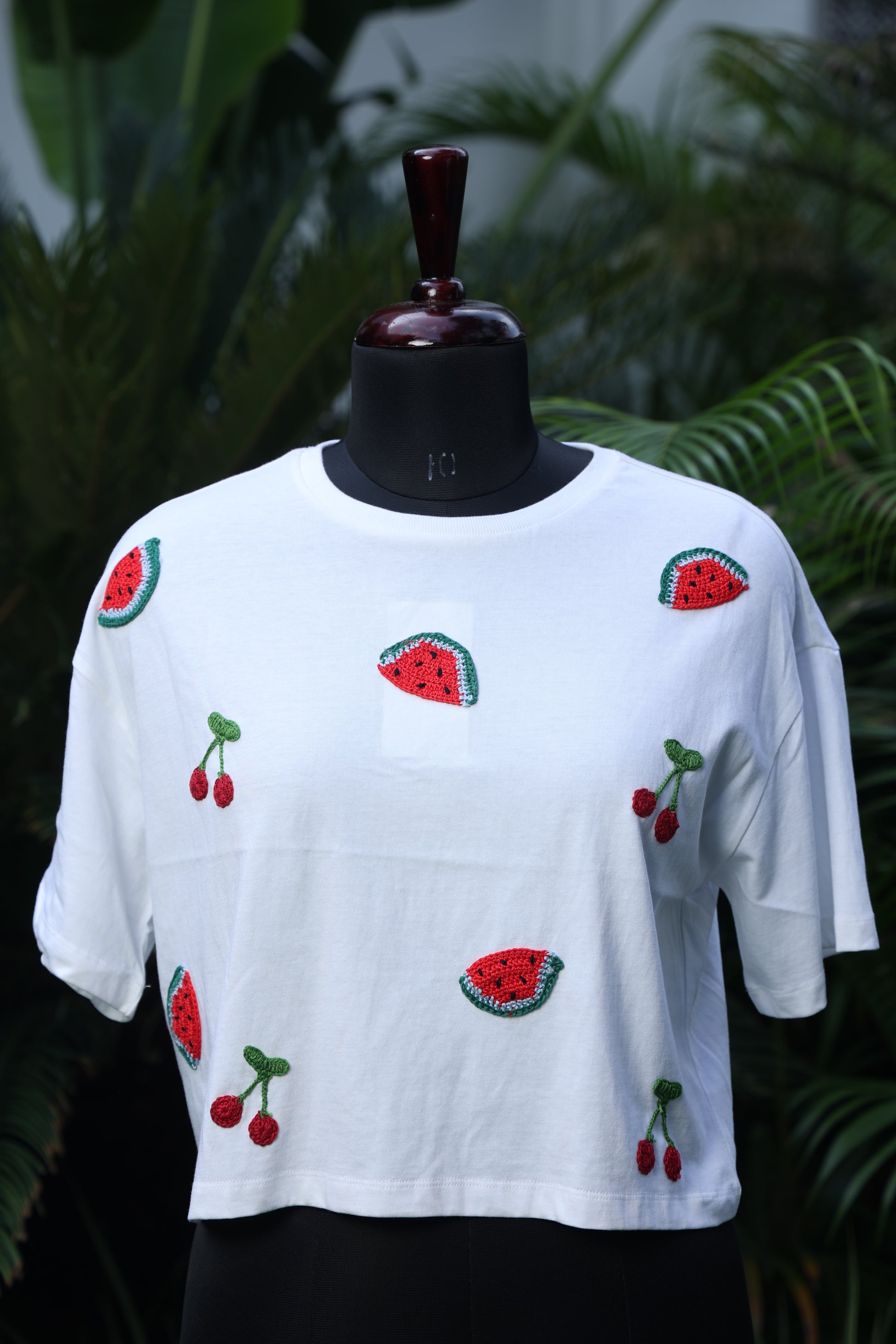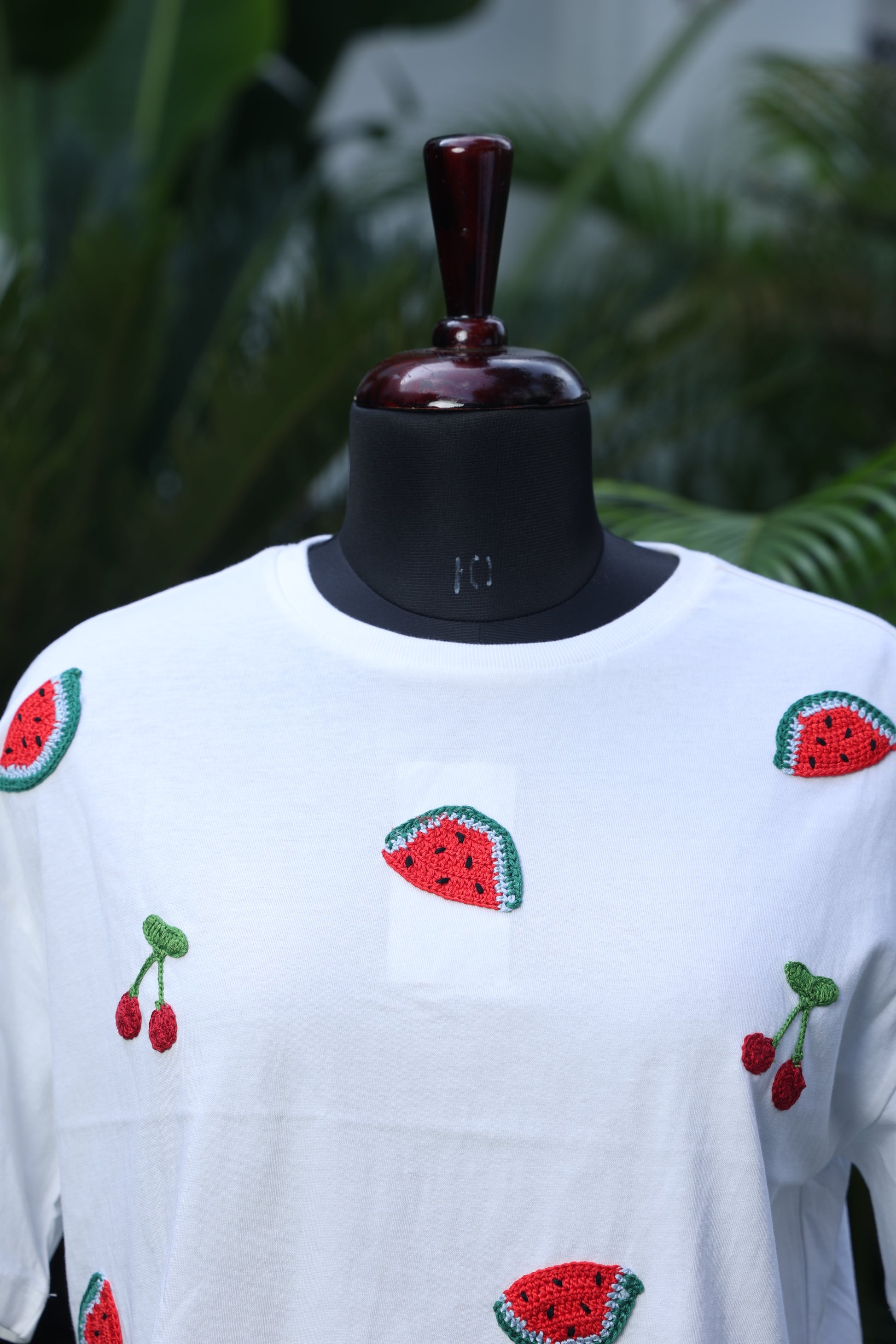 The Fresh Slices Watermelon Tee brings a playful vibe with its vibrant watermelon print, offering a fun and refreshing twist to your casual wardrobe.