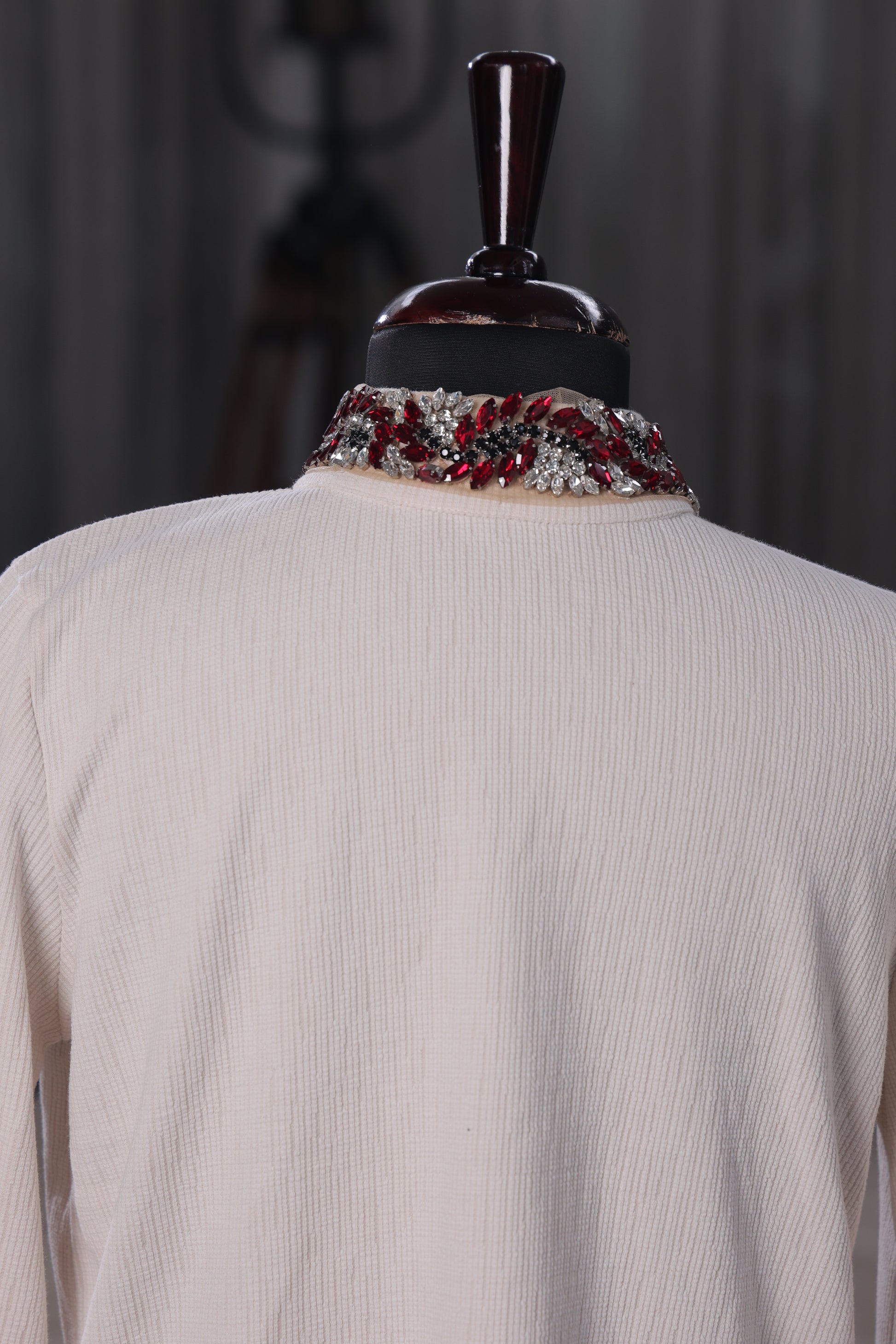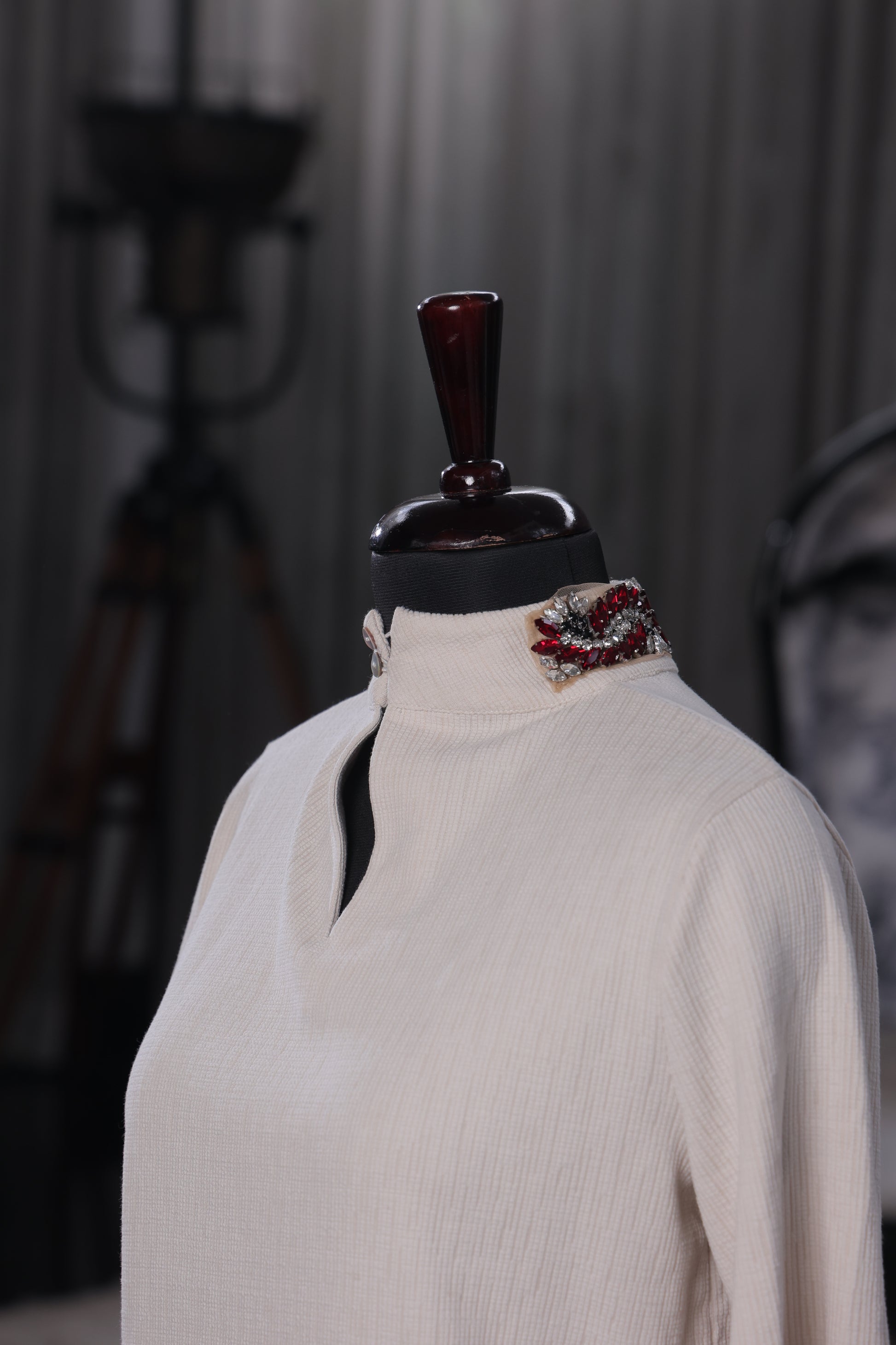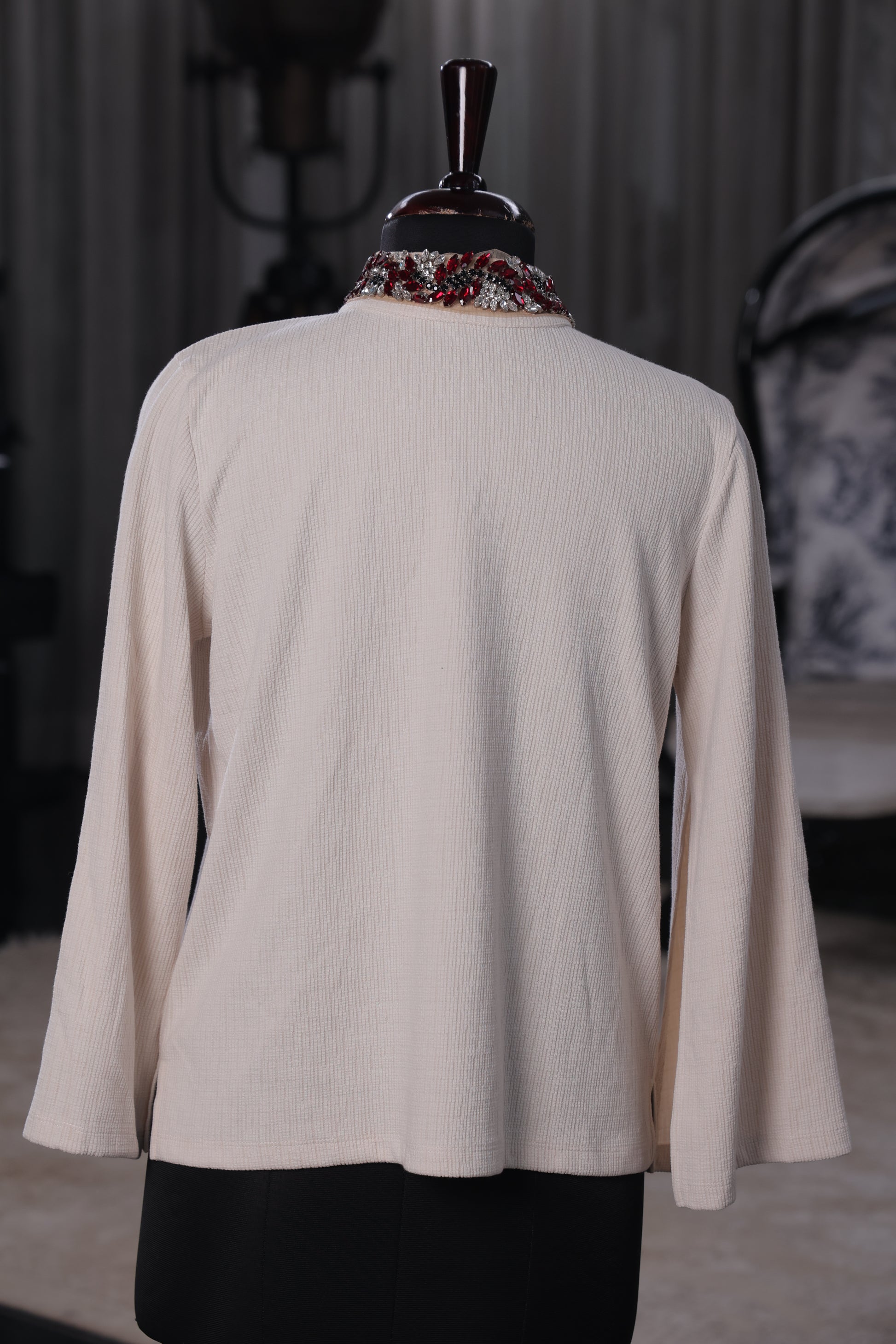 Elevate your style with this elegant beige blouse, featuring delicate embellishments that add a touch of sophistication to any outfit.