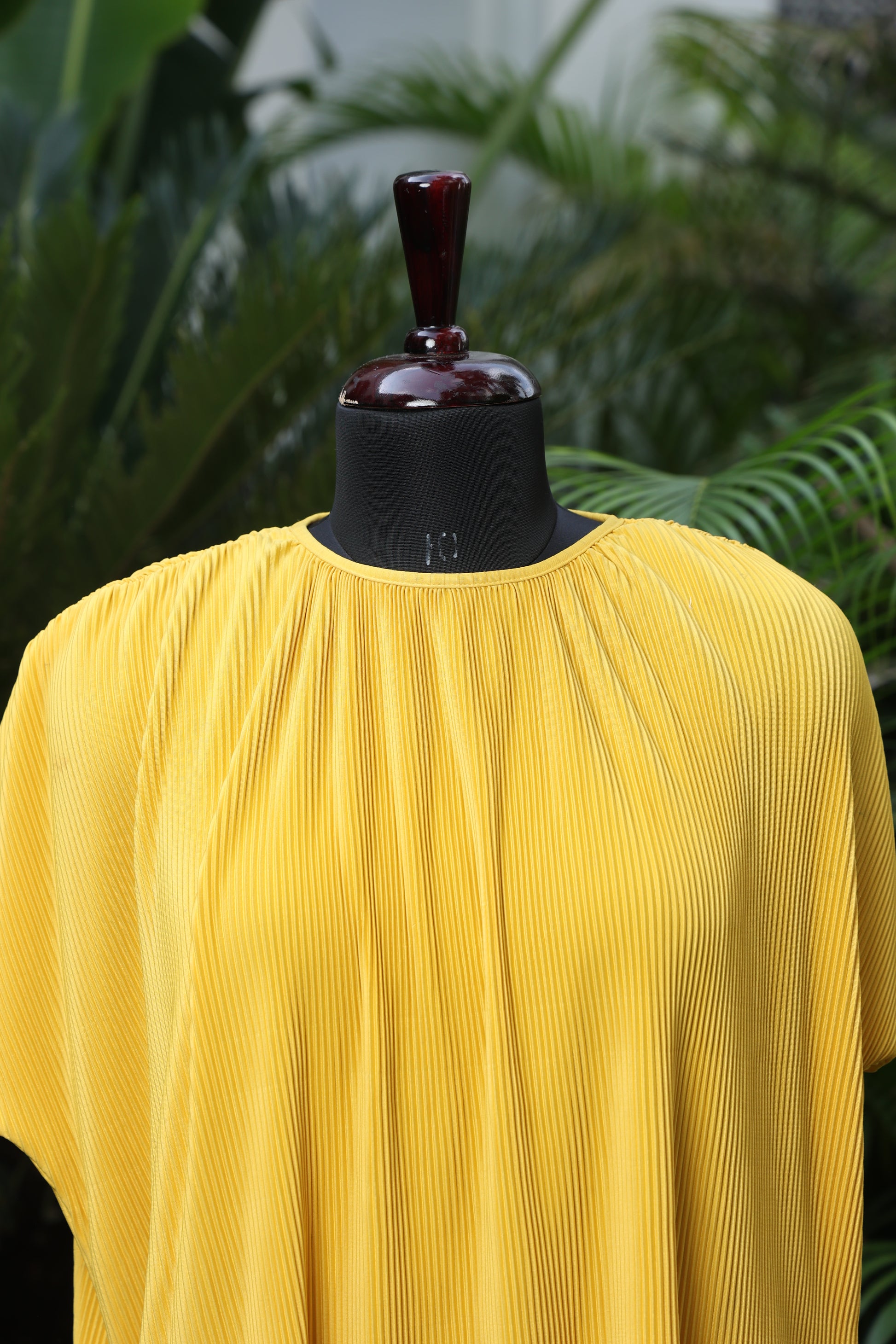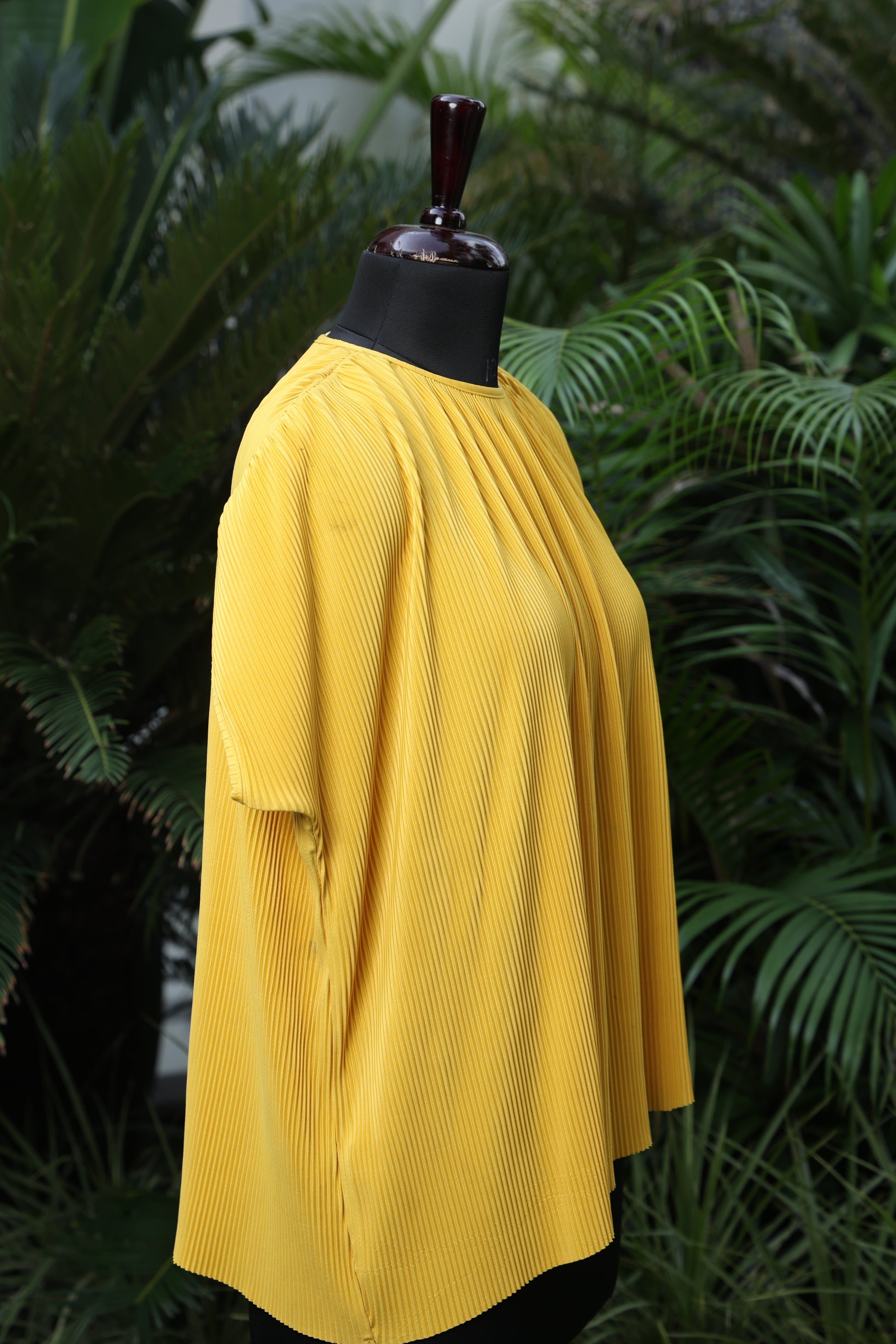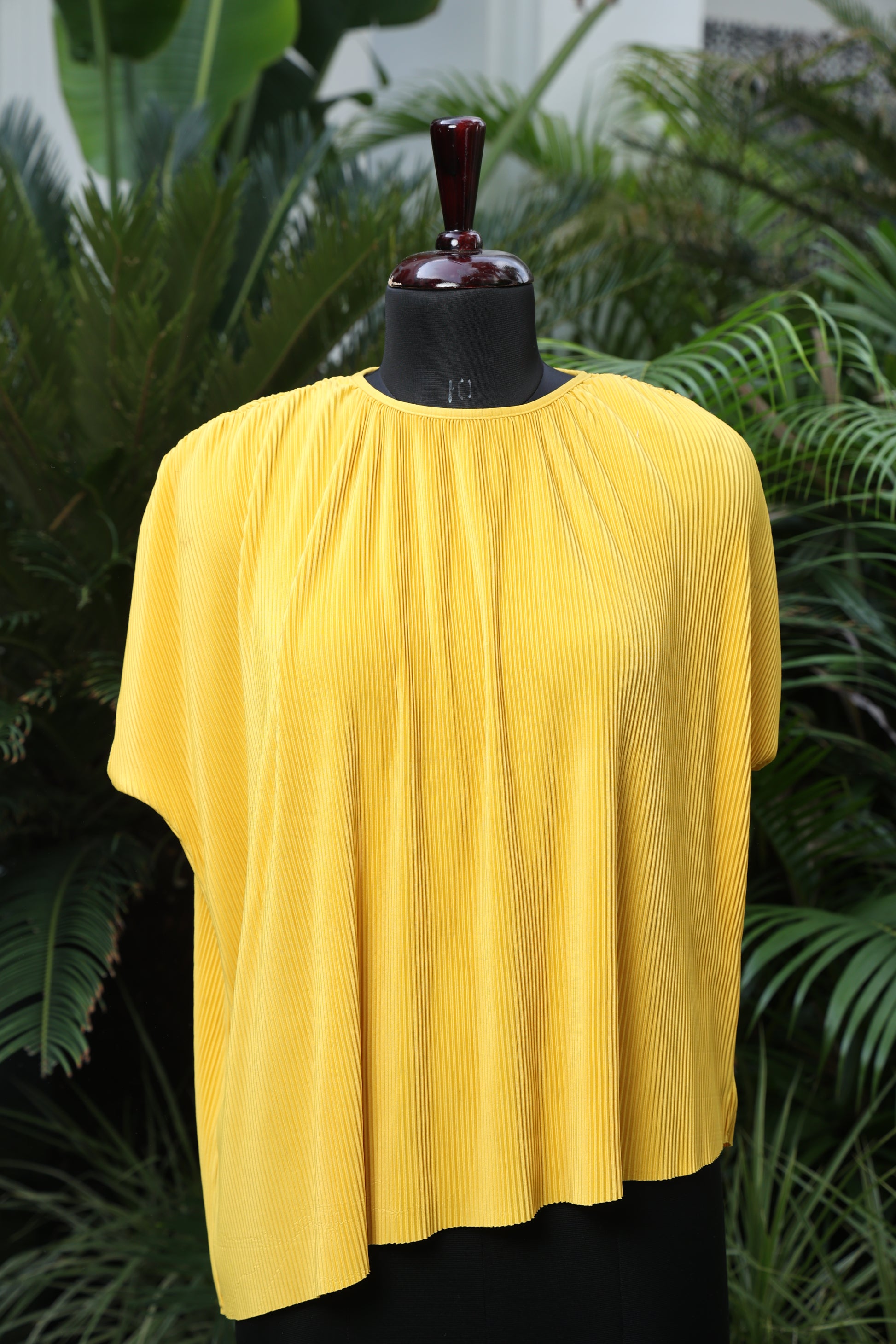 A bright yellow top crafted from soft ribbed fabric, designed for a relaxed fit that adds a splash of sunshine to any outfit.