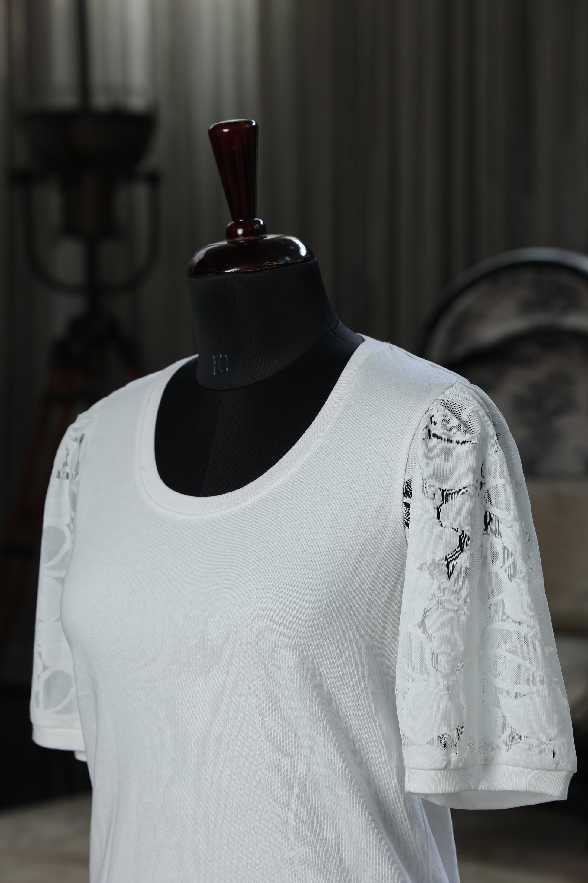 Elevate your casual style with this white lace top, blending a refined look with everyday comfort. Perfect for versatile wear, it features a subtle texture that adds depth to a classic staple.