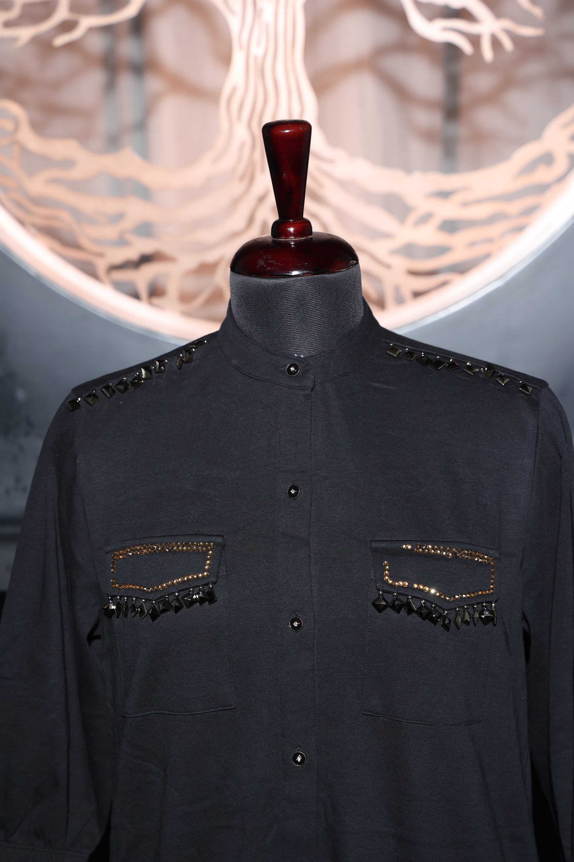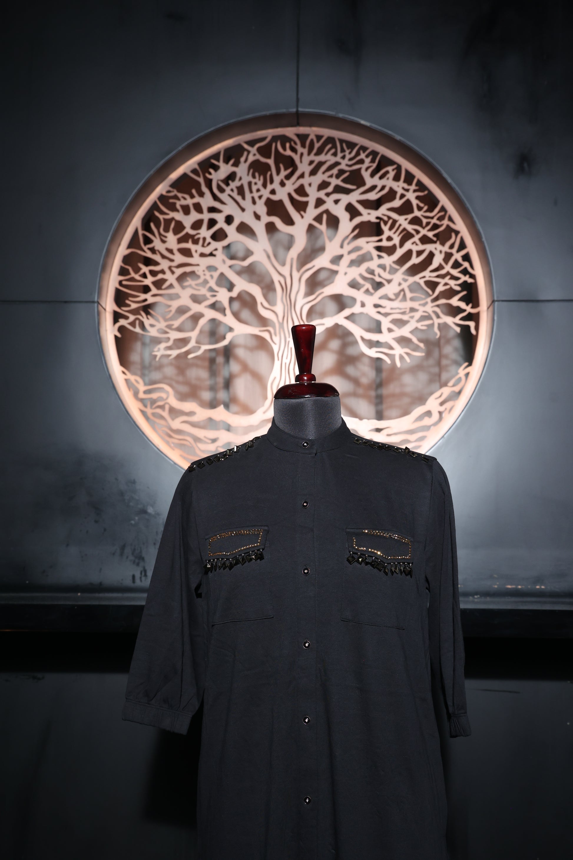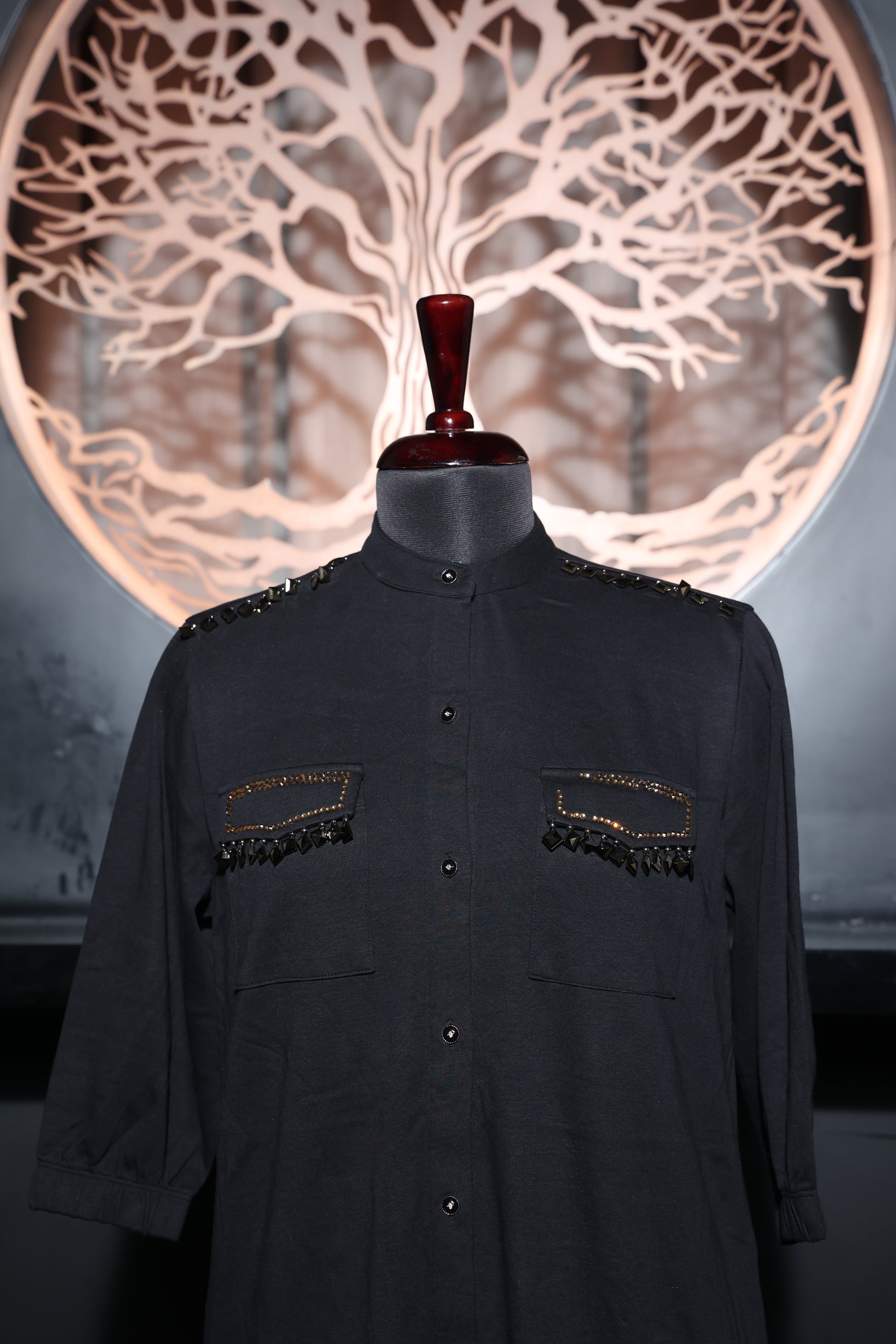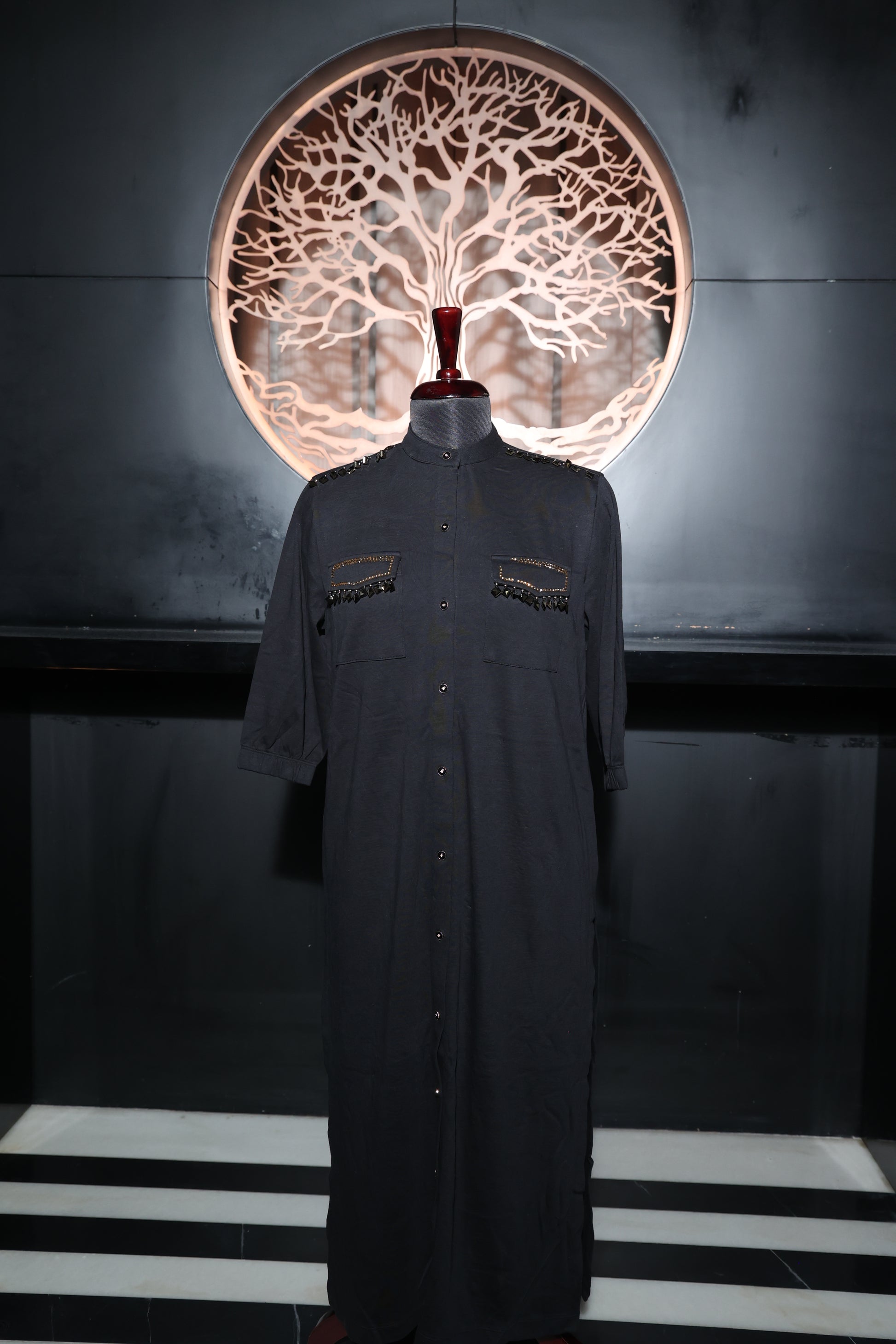 The Midnight Cascade Embellished Maxi Dress combines sleek sophistication with eye-catching details, that's perfect for both formal events and elevated everyday wear.