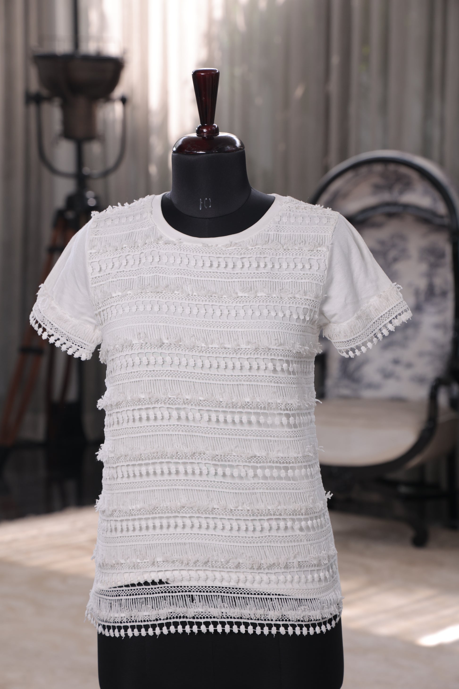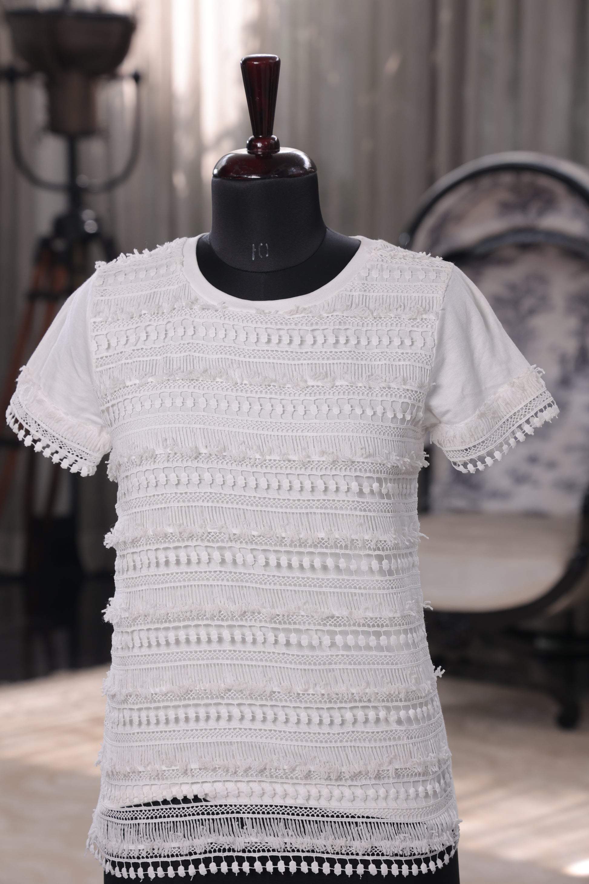 This white top exudes femininity and charm for a romantic touch. Embrace effortless style with this must-have piece that adds a fresh, airy vibe to your wardrobe.