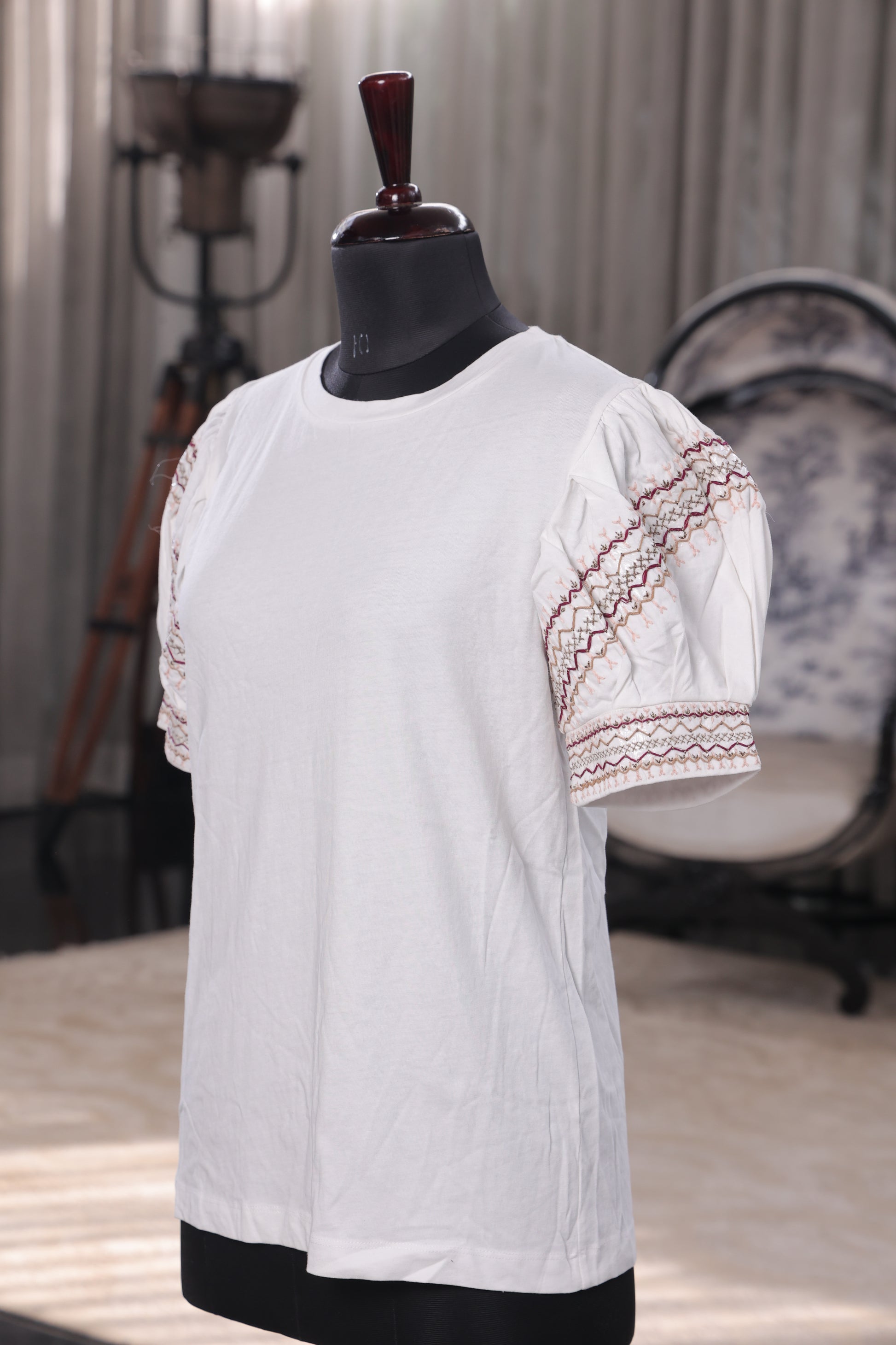 A chic and elegant white top designed for effortless sophistication, perfect for elevating both casual and semi-formal looks with its timeless charm.