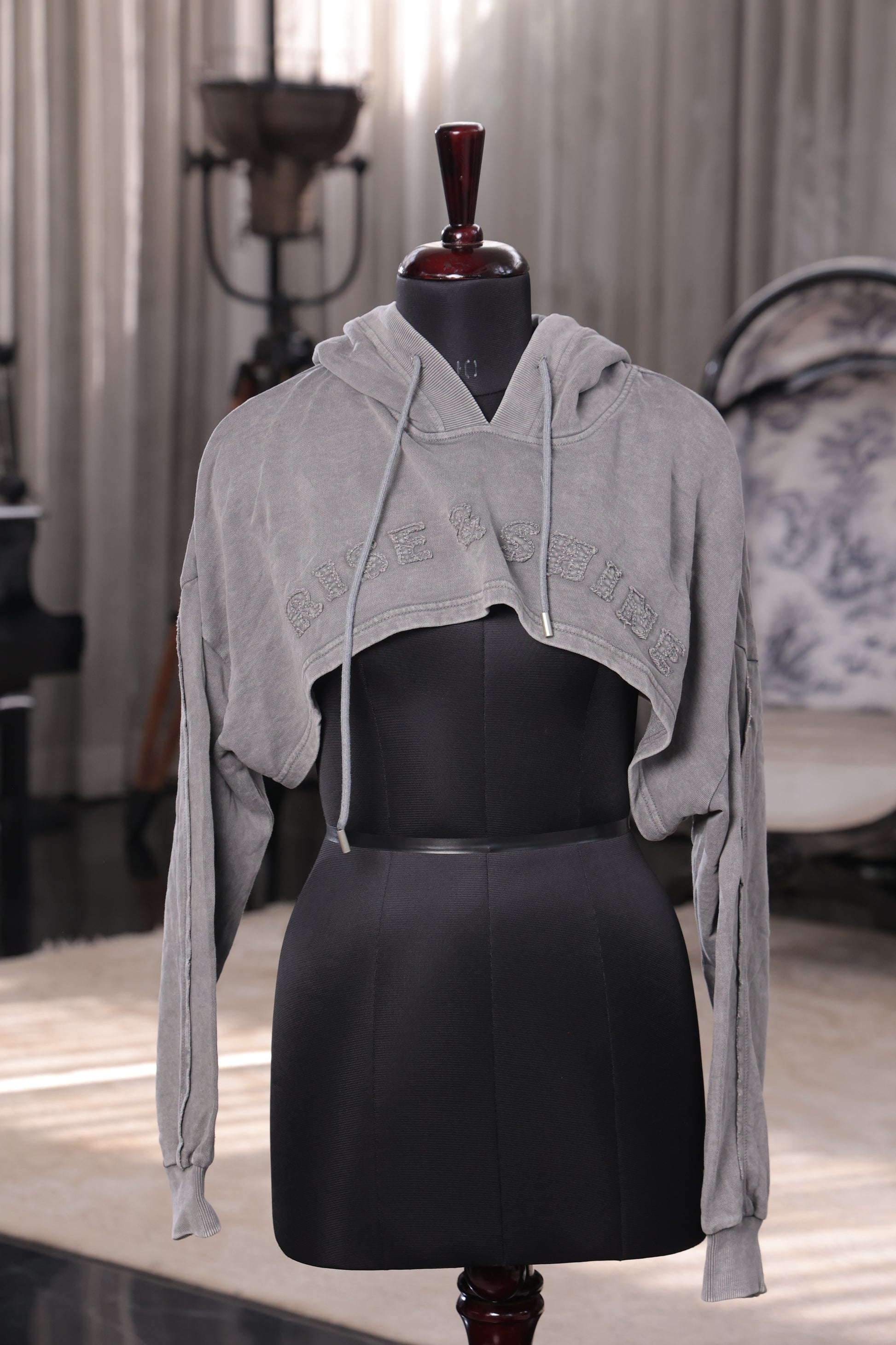 Elevate your casual style with this edgy cropped hoodie, perfect for layering over your favorite outfit.