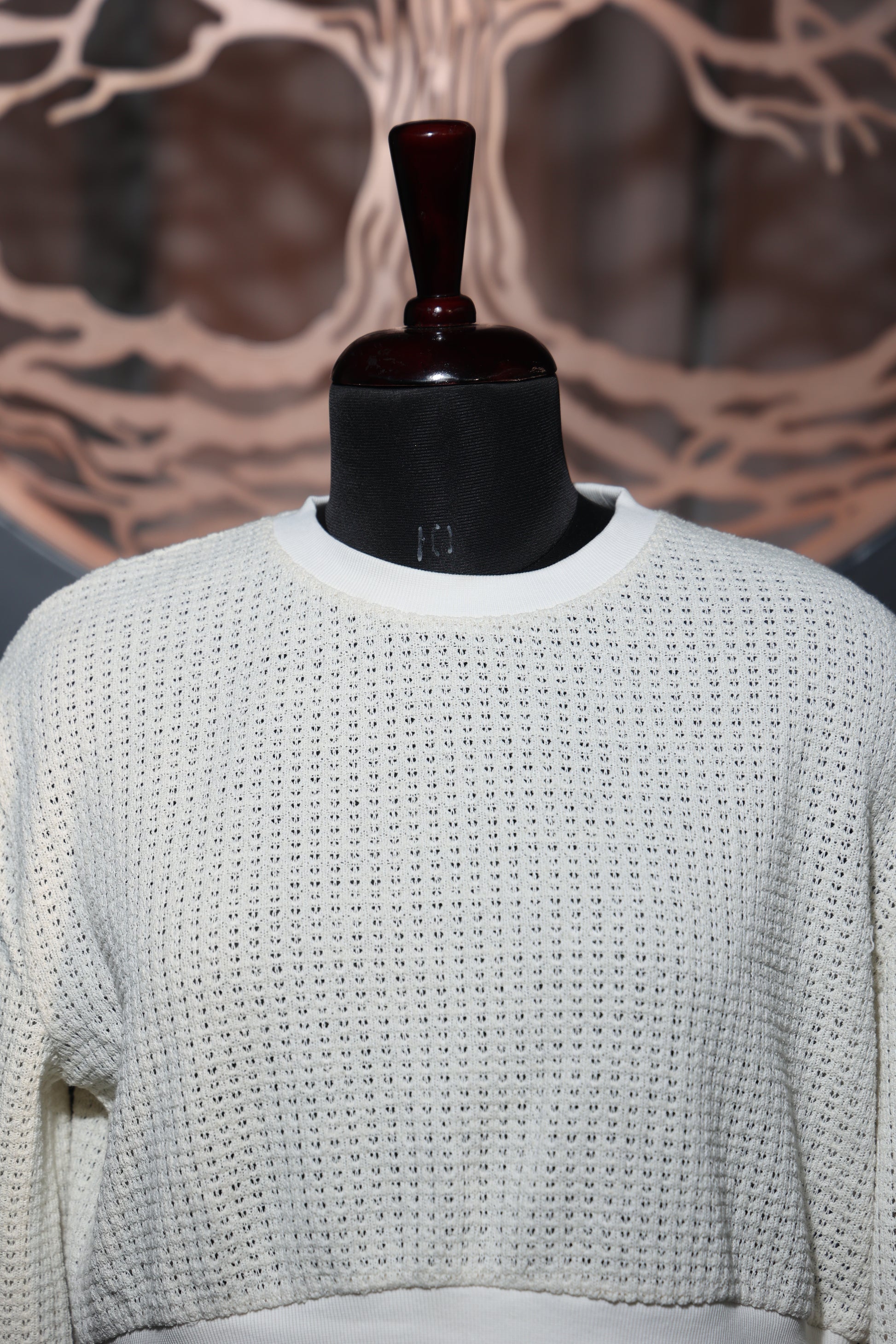 Elevate your everyday wardrobe with this medium size Luxe Waffle-Knit Top, featuring a finely crafted open-knit pattern that combines comfort with understated elegance.