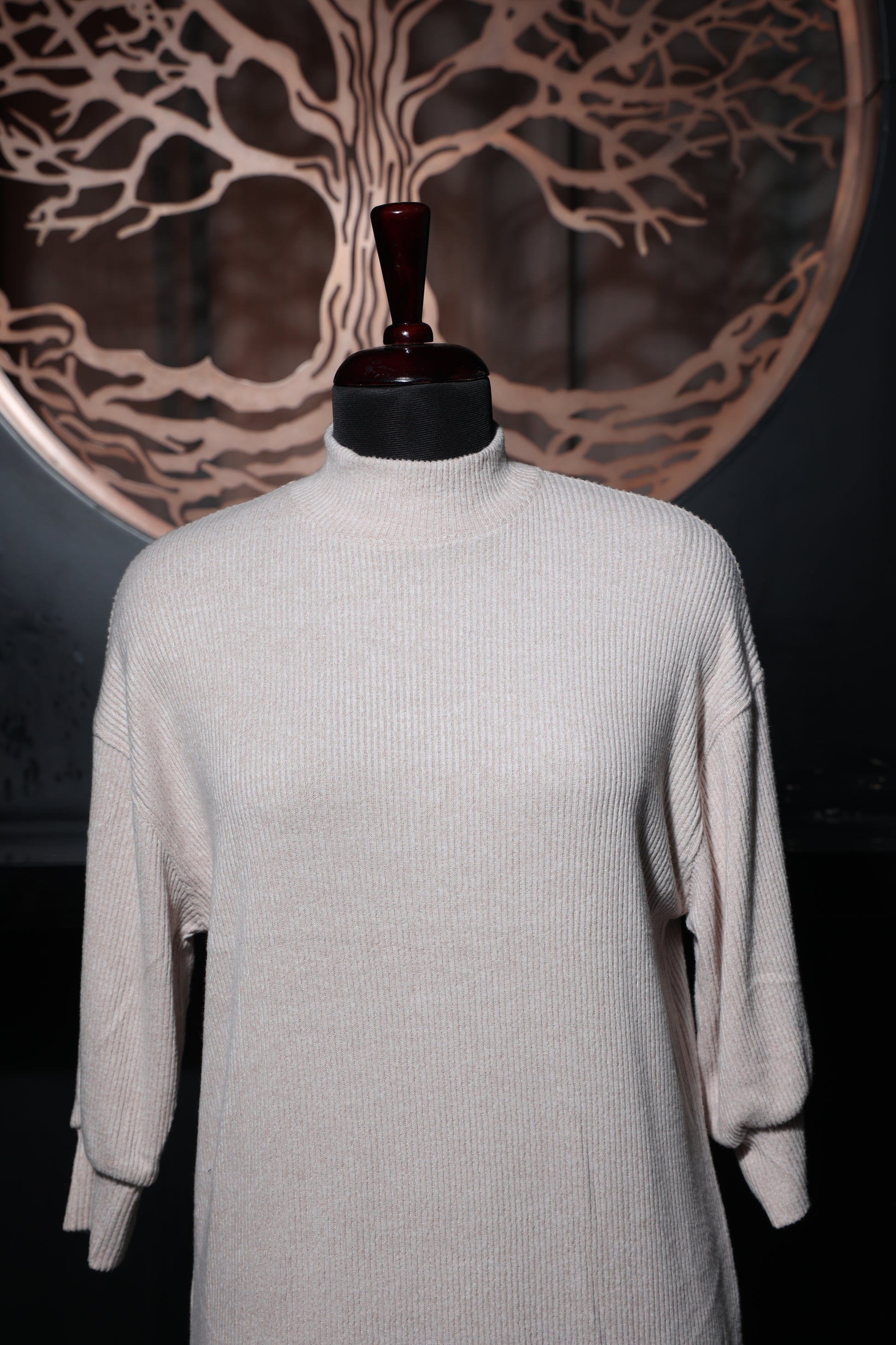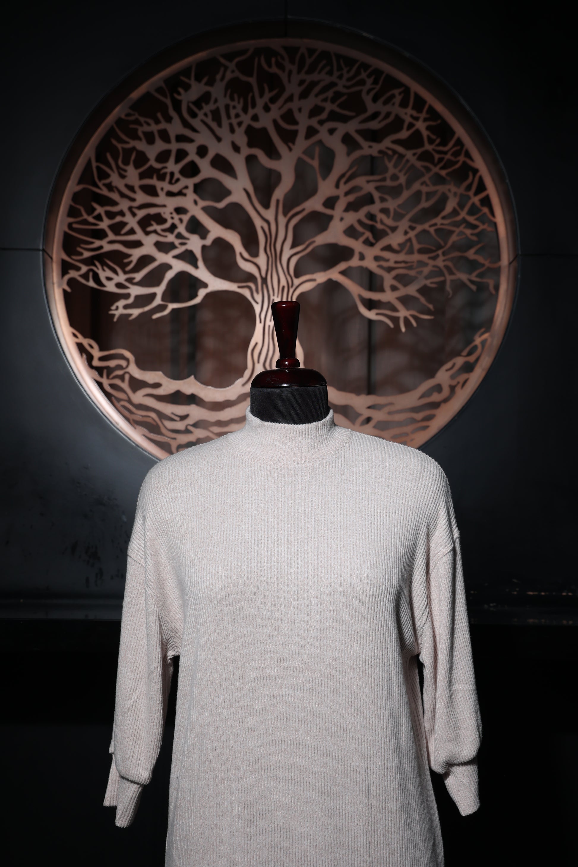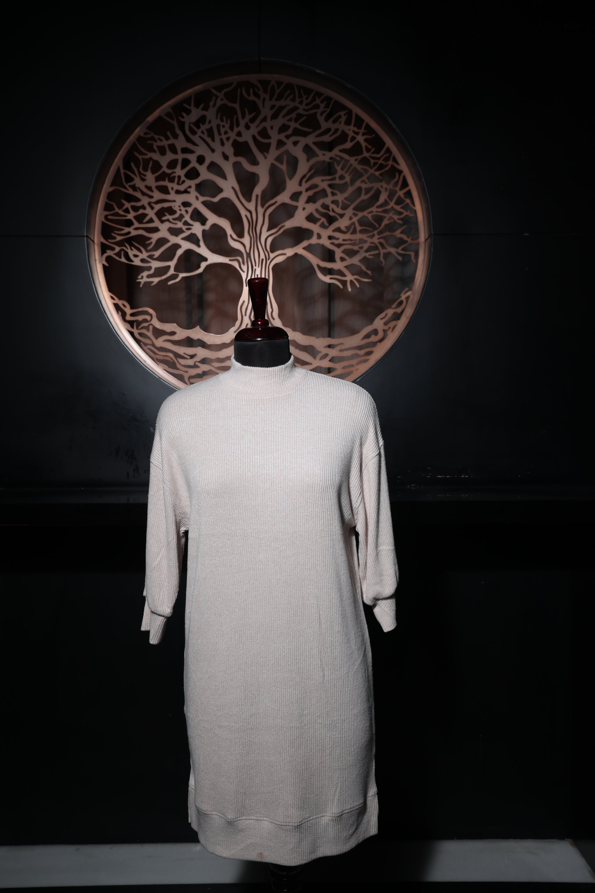The Whispering Dunes Dress combines cozy warmth with elegant style, featuring a flowing A-line silhouette and a soft wool-blend fabric, perfect for sophisticated winter wear.
